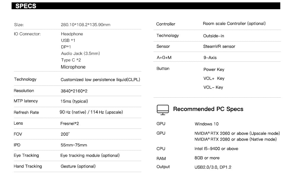 Pimax Vision 8KX Casque VR Lunettes de réalité virtuelle Bundle Kit de jeu et suivi de la main